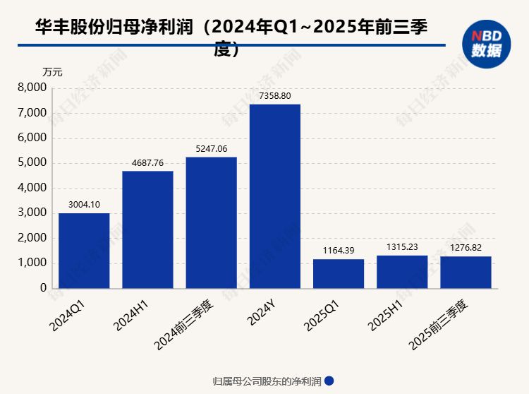 值得注意的是,这种产能过剩的压力在财务数据上已有所体现。根据华丰股份发布的2025年第三季度报告,公司今年前三季度实现营业收入5.58亿元,同比下降23.36%;归母净利润仅为1276.82万元,同比大幅下降75.67%。