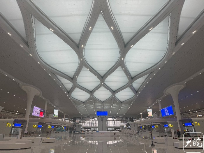 进入候车厅,第一视觉震撼来自头顶——一个巨大的、波光粼粼的“水滴”形天窗。天窗面积达1.04万平方米,仔细观察,天窗水滴造型的边缘带有淡蓝色e路配资,宛如碧波荡漾的巢湖。这个巨大的“水滴”天窗不仅融入“大湖水波科技脉动”的文化元素,还具有独特的设计,能将自然光引入核心区域。